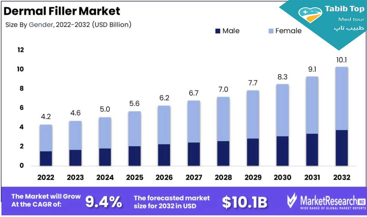 تشاهدون نسبة استخدام الفيلر بين النساء والرجال في عامي 2022 و2023، وتوقعات نمو استهلاكه في السنوات المقبلة.